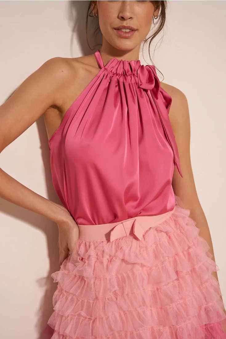 Een echte klassieker, leuk topje met strikkraag en blote schouders